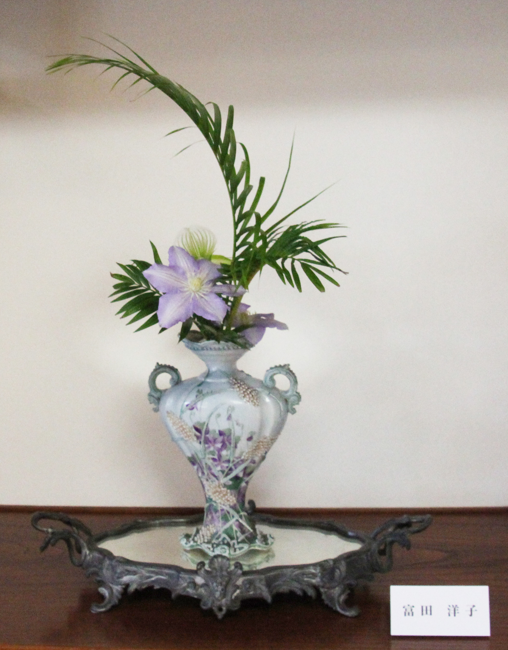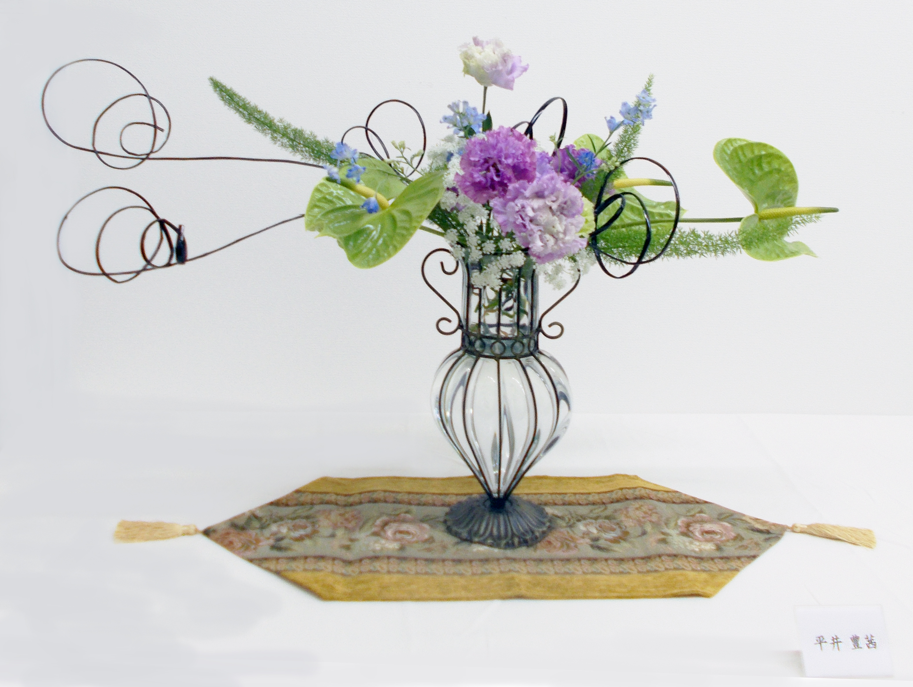 今年はこの教室から7名が参加しました。 春から初夏への移ろいを色とりどりの花々で表現した作品を多くの方々に見ていただきました。